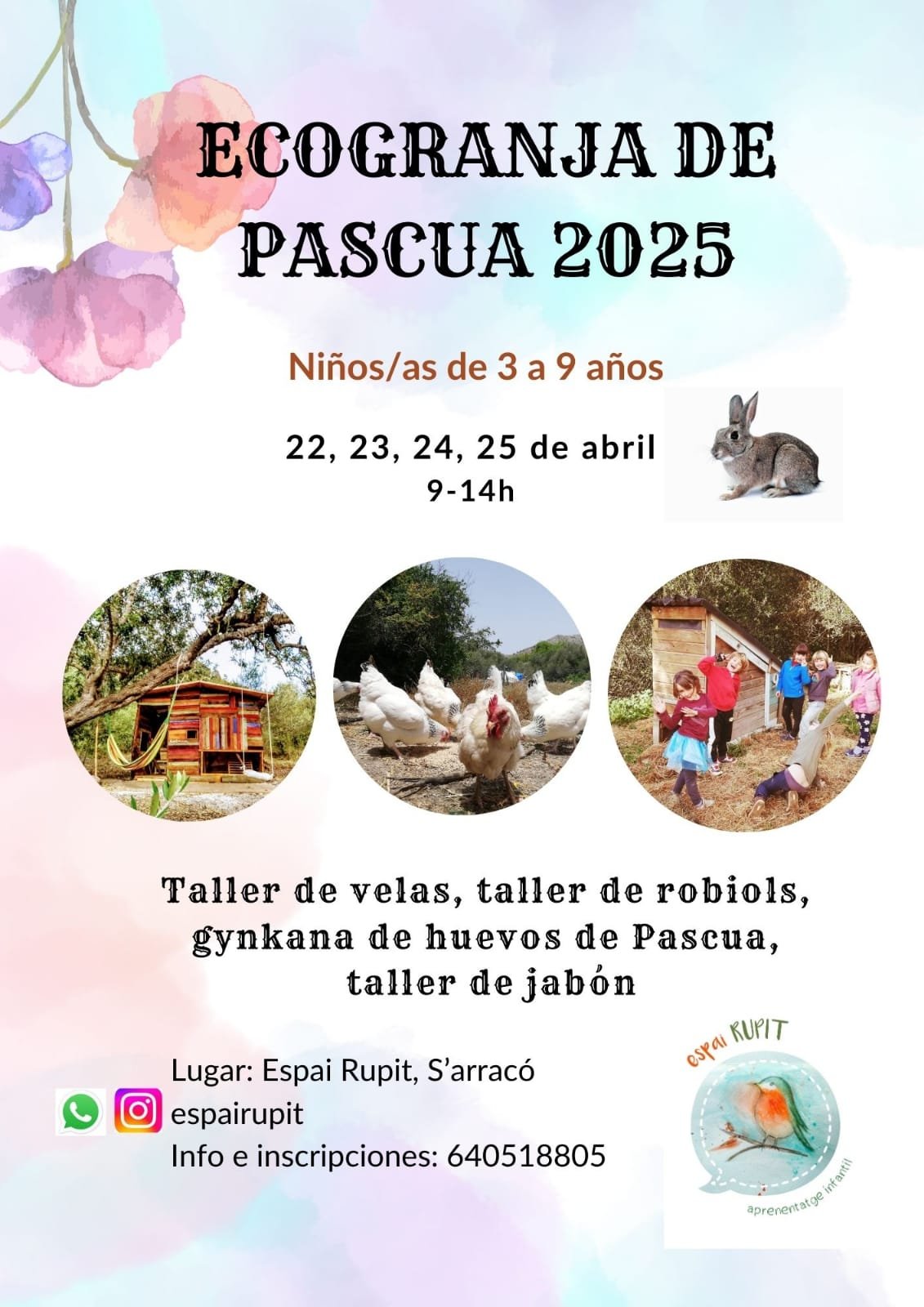 Vuelve la aventura a S'arracó, vuelve ECOGRANJA DE VACACIONES, ahora de Pascua🐰. La mejor oferta de ocio infantil en la naturaleza: gynkanas, juegos cooperativos, excursiones, juego por ambientes, rocódromo, cabañas. Cuidado de animales de granja y huerta, talleres rurales de cocina, velas y jabón.🌿. Llámanos sin compromiso para más